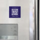 Créez votre propre aimant promotionnel avec un code QR. Ajoutez un titre, un site Web ou un autre message texte personnalisé. Customisez le style, la taille et la couleur de la police... ou changez la couleur arrière - plan bleu foncé.