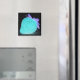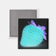 Comprend une fraise bleu/turquoise brillante avec un dessus feuillu violet/rose sur un arrière - plan noir. La lueur de la fraise a même un léger reflet sur la surface noire contre laquelle elle est fixée. Très lumineux et amusant.