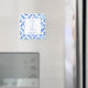 Mariage Magnet Enregistrer la date. Arrière - plan de tuiles bleu méditerranéen. Texte bleu. Site