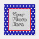 Remplacez l'image de l'espace réservé central sur cet aimant photo à points polka bleu et blanc par votre propre photo numériquement téléchargée. La conception fonctionnera sur des magnets carrés ou ronds, mais la découpe de cadre restera carré.
