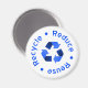 Aimant blanc avec symbole de recyclage et réduire - Réutiliser - Recycler en lettres bleues.