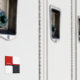 A trendy designer magnet with a bold graphic white, red, and navy blue block colorsquare pattern with rounded corners. Personalize by adding your name to this modern red, white and navy blue contemporary set in line with hot fashion trends.