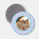 Aimant Blue and Pink Wavy Circle Photo Frame with Text
