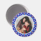 Joyeux et Festive Bleu de Noël Photo Cadre Rond Magnet cadeau pour famille et amis. Un décor circulaire coloré et lumineux pour vos décorations d'hiver et bleu glacé. Le design du cadre est une conception d'abstraction géométrique et joliment motif sur les modèles traditionnels de blocs de couleurs festives. En hiver, les couleurs sont bleu glace et blanc neige, avec des touches de brun rougeâtre foncé. Personnalisez-le en remplaçant la photo par la vôtre, pour un cadeau précoce pour la famille et les amis, pour célébrer Noël. Chérissez vos souvenirs de Yuletide d'une Wonderland d'hiver. Un excellent moyen de décorer le réfrigérateur de cuisine et le tableau magnétique de bureau à domicile pour les meilleurs amis et frères et soeurs, ou les couples. Un hôtel familial bon marché pour les fêtes.