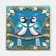 Papier coloré représentant deux geais bleus perchés sur une branche, encastrés dans un cadre décoratif. Le design présente un artisanat complexe, des teintes vibrantes et des détails harmonieux évoquant la beauté et la créativité de la nature.