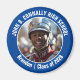 Ce cool customisé de la photo du groupe de marche du lycée présente la typographie blanche de votre équipe et le nom du joueur sur un aimant bleu. Personnalisez avec la photo de votre élève et l'année de classe comme un parent fier. Un père et une mère peuvent porter ces boutons à la compétition et aux jeux.