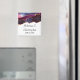 Un aimant mariage avec un design abstrait avec des couches bleues et violettes avec des rubans de feuille d'or imitation entre les deux.