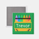 L'aimant personnalisé et audacieux pour les enfants est idéal pour les salles de jeux et les zones d'enseignement à la maison. Design dispose d'une boîte de crayon séparée avec la pièce à personnaliser avec le nom de l'enfant au centre, sur l'arrière - plan vert.