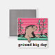 Ce marmotte apparaît pour la première fois en février pour voir s'il peut voir son ombre. Un lit plein d'herbe avec quelques plantes est visible contre un fond rose et rose. Une coccinelle rampe sur un monticule d'herbe. Groundhog Day est imprimé sous le design. Ces magnets sont disponibles dans des formes et des tailles variées. Également disponible en 2 couleurs différentes.