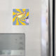 Le dessin de ce Magnet Carré est un oiseau de dessin animé avec un bec inhabituel, une tête orange et des rayures bleues et blanches sur son cou. Il se dégage de sa coquille d'oeuf pourpre. Illustration au crayon de couleur poinçon. Cliquez sur le bouton personnaliser pour ajouter du texte et personnaliser. Outre le tourbillon bleu, il y a 7 autres tourbillons arrière - plans colorés à choisir. Le tourbillon jaune peut être modifié en n'importe quelle couleur à l'aide de l'outil couleur arrière - plan.