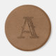 This  magnet design features a brown faux leather texture with a monogrammed initial in the center for you to personalize.