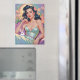 Cette oeuvre capture un moment magique de Pâques ! Un salon de beauté aux cheveux raven se trouve gracieusement dans une robe turquoise chatoyante, ses vagues sombres ornées de fleurs roses vives. Un lapin blanc moelleux se niche à côté d'elle, ajoutant une pointe d'innocence à son allure glamour. L'arrière - plan éclate de fleurs colorées et d'une douce lueur cosmique, reflétant un mélange de joie printanière et de charme éthérée. Son élégance et ses détails délicats, comme ses bijoux étincelants, font de cette pièce un régal. Idéal pour ceux qui aiment l'art rétro avec un flair fantaisiste de Pâques !