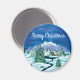 Personnalisez cet unique "Un de type" réfrigérateur de Noël Magnet! Il est doté d'un Cabine en rondins paisibles niché dans un Wonderland d'hiver. Entouré par des montagnes enneigées et des pins couverts de neige! Peinture d'art original par l'artiste Kerry Miller.