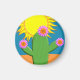 Image désertique d'un cactus aux fleurs roses par jour ensoleillé. Design de dessin animé. Magnets pour la décoration. Idée cadeau.