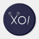 Aimant cadeau de crosse créatif pour les joueurs d'équipe, les entraîneurs ou les fans de sport, avec bâtons de laxisme xoxo sur arrière - plan bleu marine.