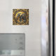 Un majestueux éléphant noir, symbolisant la force et la sagesse, est représenté sur un fond de cadre doré complexe, exsumant un sentiment de grandeur et d'élégance. Le contraste entre la silhouette sombre de l'éléphant et les détails dorés chatoyants du cadre crée une image visuellement saisissante et captivante.