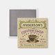Cet aimant carré à thème café est parfait pour tous ceux qui tiennent leur propre café ou ont un thème café dans leur décor de cuisine maison. Réalisée dans des tons de brun rétro, vert, violet et d'orange, cette conception inspirée d'espresso / cappuccino comprend une tasse sur une soucoupe, deux bannières texte personnalisées et les mots "Café Shop / Roast frais / Grande Saveur" en violet. La tasse est bouillante et la bannière supérieure a des tourbillons qui imitent la fumée. Tout repose sur un arrière - plan léger motif-haricot. Utilisez les modèles pour ajouter facilement votre nom. Vous pouvez également modifier le bas de la page si vous le souhaitez, qui se lit actuellement : "Aucun motif de plainte". Si vous devez redimensionner le texte pour l'adapter, cliquez sur "Customiser". Prenez une tasse de Joe et profitez de votre aimant à café personnalisé.