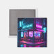 Un café coréen cosy à Séoul, éclairé par de petites lumières néons, à l'ambiance artistique de style lofi.