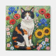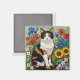 Aimant Calico Cat and Folk Art Sunflowers