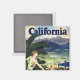affiche vintage de voyage ferroviaire faisant la promotion de la Californie comme destination estivale.