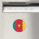 Drapeau du Cameroun. Le drapeau national du Cameroun a été adopté sous sa forme actuelle le 20 mai 1975, après que le Cameroun soit devenu un État unitaire. C'est un tricolore vertical de vert, rouge et jaune, défiguré par une étoile à cinq branches dans son centre. Il y a une grande variation dans la taille de l'étoile centrale, bien qu'elle soit toujours contenue dans la bande intérieure. La palette de couleurs utilise les couleurs traditionnelles panafricaines (le Cameroun devient le deuxième état à le faire), et le tricolore est adapté du drapeau de la France. On pense que la bande centrale représente l'unité : le rouge est la couleur de l'unité, et l'étoile est appelée "l'étoile de l'unité". Le jaune représente le soleil, mais aussi les savanes dans la partie nord du pays, tandis que le vert est pour les forêts dans la partie sud du Cameroun.