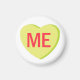 A lime green candy heart that says, "ME."