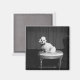 Aimant Caniche blanc assis sur le tabouret B&W