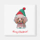 Vue frontale d'un mignon petit caniche brun blanc portant un casquette de Noël rouge et vert, avec les mots "Joyeux Noël !". Le design a été créé à l'aide de l'IA. Vous pouvez facilement personnaliser ce mignon aimant en remplaçant les mots par des mots de votre choix.