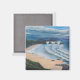 Le tableau représente une journée brumeuse et nuageuse sur la côte avec les vagues rythmées qui se jettent sur la plage.