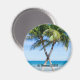 Ajoutez votre propre photo et votre emplacement à ce bel aimant qui comprend une plage, un océan tropical turquoise et des palmiers. Le paradis sur un aimant !