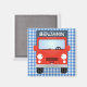 Pour les amateurs de camion ! Ce camion rouge mignon est dessiné dans un style amusant dessin animé sur un arrière - plan à chèque bleu.