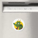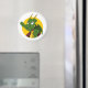 Aimant avec illustration de la tête d'un petit dragon volant vert mignon, en cercle jaune, imaginaire mignon / Conte de fées design pour enfants par Maxi Harmony