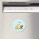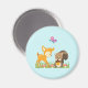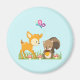 Un aimant avec une jolie illustration montrant un cerf de bébé et un petit écureuil tenant une glande et un papillon volant au-dessus de leur tête. Ces adorables créatures boisées se tiennent debout sur une herbe avec quelques champignons fantaisistes à leurs pieds.