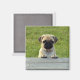 Portrait adorable photo d'un chiot carlin au-dessus d'une table de pique-nique.