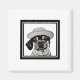 Chiot carlin fille en casquette et manteau encadré et couleurs noir et blanc. Placer dans la chambre d'un enfant, la chambre à coucher ou la chambre familiale, réfrigérateur. Si mignon et adorable.