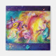 Coloré, fantaisie, peinture figurative abstraite musicale à l'aquarelle avec figures dansantes, musiciens, costumes carnavaleux, masques plumés en rose vif, fuchsia, vert, rouge, bleu, jaune couleurs, inspiré de Comédie d'Art (Commedia dell'arte ), masques italiens et Carnaval de Venise. C'est aussi un beau cadeau pour noël, vacances, occasions spéciales, mariages, fêtes d'anniversaire, Mardi Gras ( Mardi gras ) saison, bal de la veille du Nouvel An, Saint Valentin.