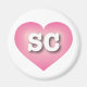 Cet aimant est doté d'un coeur rose avec un centre blanchi contenant les lettres coques supérieures et audacieuses SC, l'abréviation officielle pour la Caroline du Sud, l'état du palmetto.