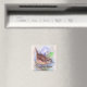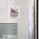 Un bracelet en Caroline perche sur une branche avec des gloires matinales d'été fleurissant dans l'arrière - plan sur cet aimant avec une oeuvre d'art pastel. Ces petits oiseaux doux sont natifs de l'est de l'Amérique du Nord et sont l'oiseau de l'état de la Caroline du Sud.