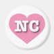 Cet aimant est doté d'un coeur rose vif contenant les lettres coques en haut, blanc et gras NC, l'abréviation officielle de Caroline du Nord, l'état du talon de goudron.