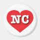 Cet aimant est doté d'un coeur rouge vif contenant les lettres coques en haut et en blanc NC, l'abréviation officielle pour la Caroline du Nord, l'état du talon de goudron.