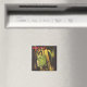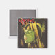 Aimant frigo avec logotype angulaire "Metropolis" et image d'une femme portant un casque avec les yeux fermés, adapté de l'art cinématographique original (domaine public) de 1927 pour l'adaptation en scène-radio-dramatique du PMRP 2023.