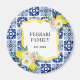 Éclaircissez votre espace avec cet aimant citron ! Avec un motif de carreaux méditerranéens bleu marine et un bouquet floral