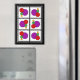 Des cercles aux couleurs vives sont empilés dans des cadres carrés noirs et gris dans cet art abstrait géométrique de Richard H. Fay.