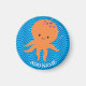 Un mignon poulpe orange. Bébé magnets d'animaux. Modifiez le nom pour customiser. Version motif vague bleue. Idée cadeau pour les enfants.
