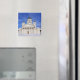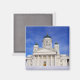 Un aimant souvenir qui présente la cathédrale d'Helsinki (Helsingin tuomiokirkko), l'une des attractions touristiques les plus populaires d'Helsinki, capitale de la Finlande. Cette vue est du Carré du Sénat, montrant des marches enneigées menant à l'avant de la cathédrale. Un grand dôme vert se dresse au centre avec deux des quatre plus petits dômes de chaque côté. Conçue par Carl Engel et construite entre 1830 et 1852, la cathédrale est de style néoclassique avec ses murs blancs, ses dômes verts et sa décoration dorée qui brille ici dans un ciel d'hiver bleu froid. Facile à customiser.