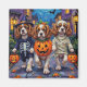 L'adorable Roi Cavalier Charles Spaniels habillés de costumes d'Halloween ludiques portent des seaux citrouilles tout en trompant ou en traitant sous le ciel illuminé par la lune. Ce design festif met en valeur le manteau soyeux, l’expression douce et la personnalité affectueuse de la race, capturant parfaitement l’atmosphère éffrayante et amusante de la nuit d’Halloween. Une charmante fête pour les amoureux de les chiens comme pour les fans d'Halloween.