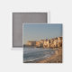 Aimant photo souvenir avec l'architecture typique des vieilles maisons construites sur la plage de la mer Méditerranée dans la ville de Cefalu, sur l'île de Sicile en Italie.