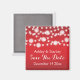 Chaîne de lumières et de flocons de neige blancs mariage d'hiver rouge Enregistrer l'aimant Date avec une chaîne de lumières brillante scintillante blanche avec des flocons de neige blancs sur le dessus sur l'arrière - plan dégradé rouge. Ce design mariage moderne et tendance fait partie d'un ensemble ou d'une collection de mariages, est entièrement personnalisable et est parfait pour un mariage de Noël d'hiver. Certains éléments sont offerts par vectorportal.com.