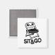 Cet adorable aimant présente un design amusant d'un visage souriant sur une chaise pliante avec les mots "Sit & Go". Parfait pour ajouter une touche d'humour à votre réfrigérateur ou à votre carte magnétique.
