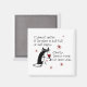 Peu importe que le verre soit à moitié plein ou à moitié vide. De toute évidence, il y a de la place pour plus de vin. Voici un chat noir rétro et branché (le Cabernet Cat) portant ses lunettes de soleil signature, tenant son verre de vin rouge, et réglant cette argumentation stupide une fois pour toutes. Le texte est dans une police vintage mignonne, et il y a des étoiles bordeaux tout autour. Le C.C. et la citation drôle sont tous sur un aimant frigo amusant.